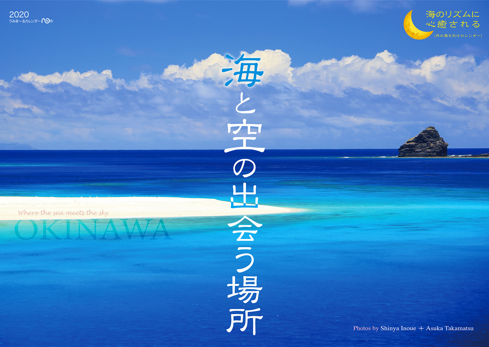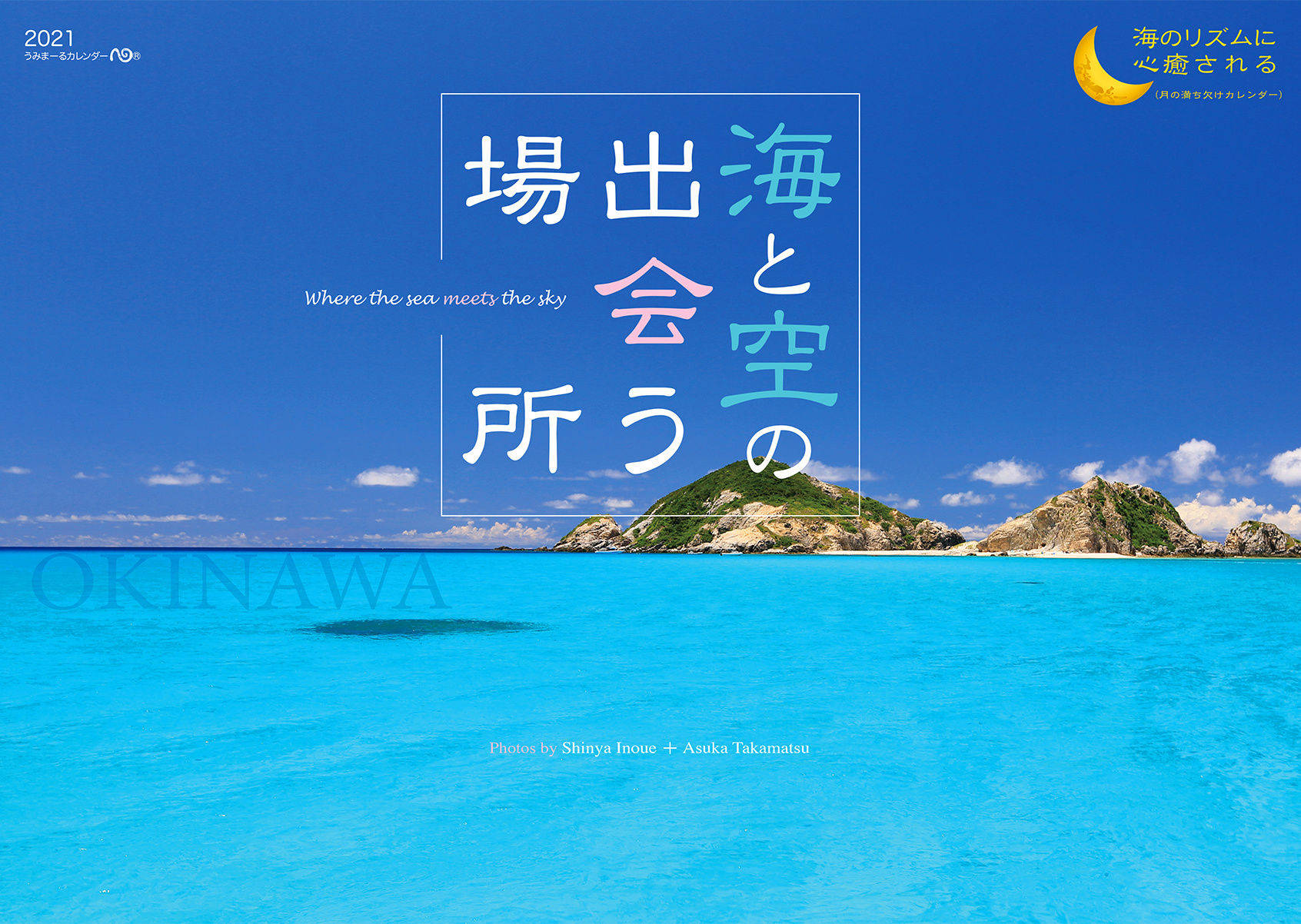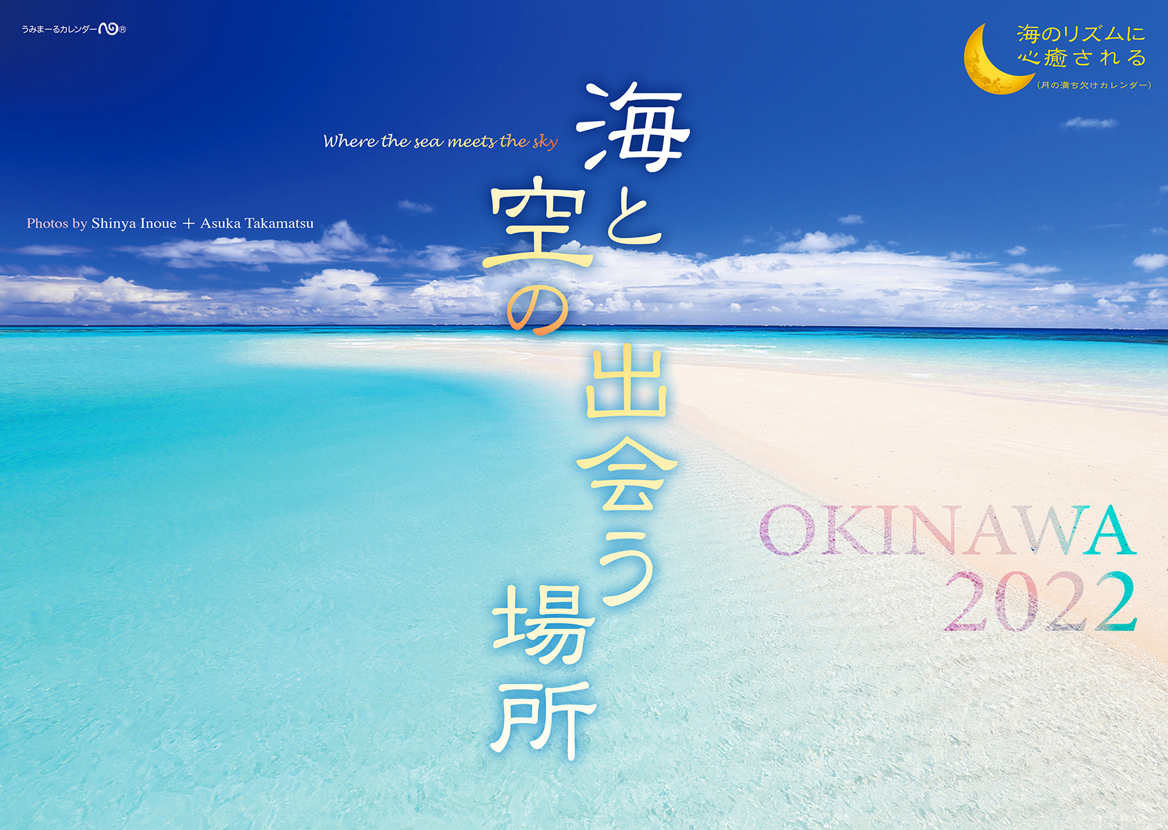 青い空と海、白い砂浜、透明な波、茜色に染まる海辺の風景、祝福の虹、きらきら輝く無数のいのちと星の瞬き。心癒される沖縄の情景。月の満ち欠けとともに、海のリズムを感じる12ヶ月…