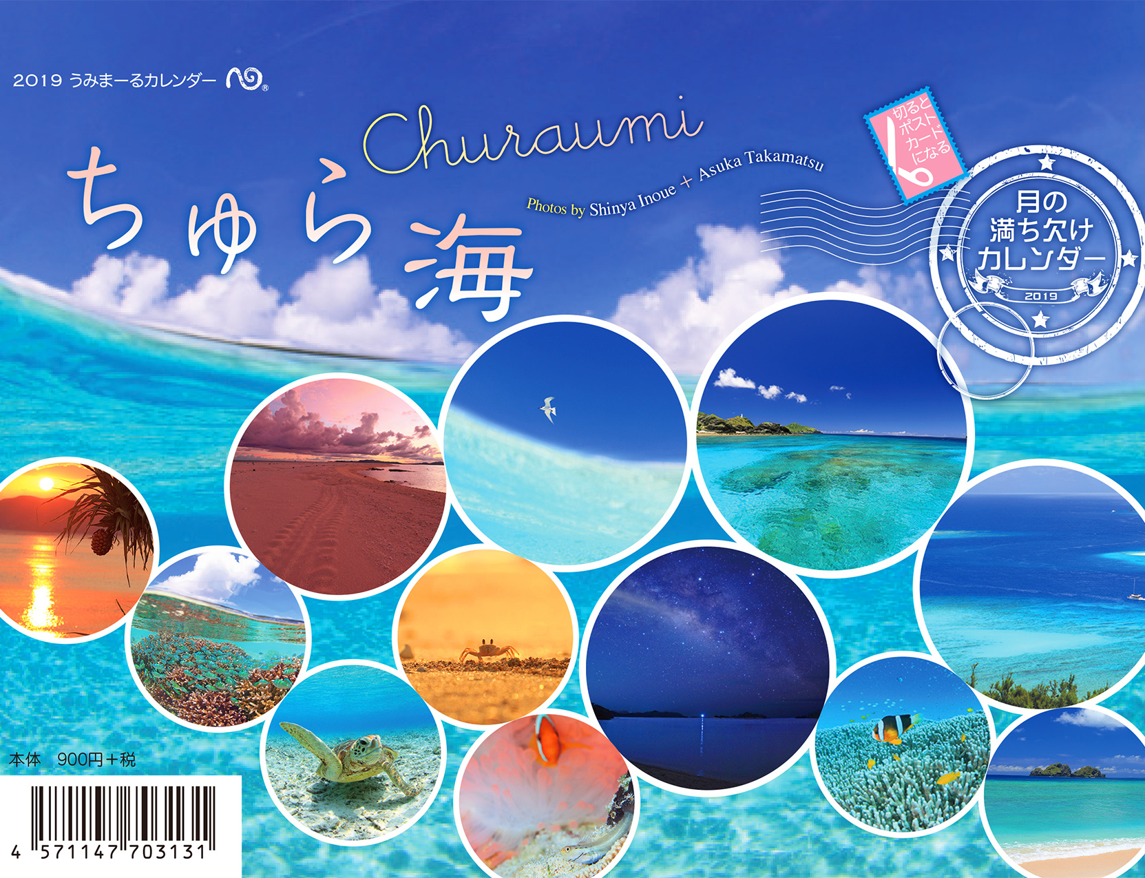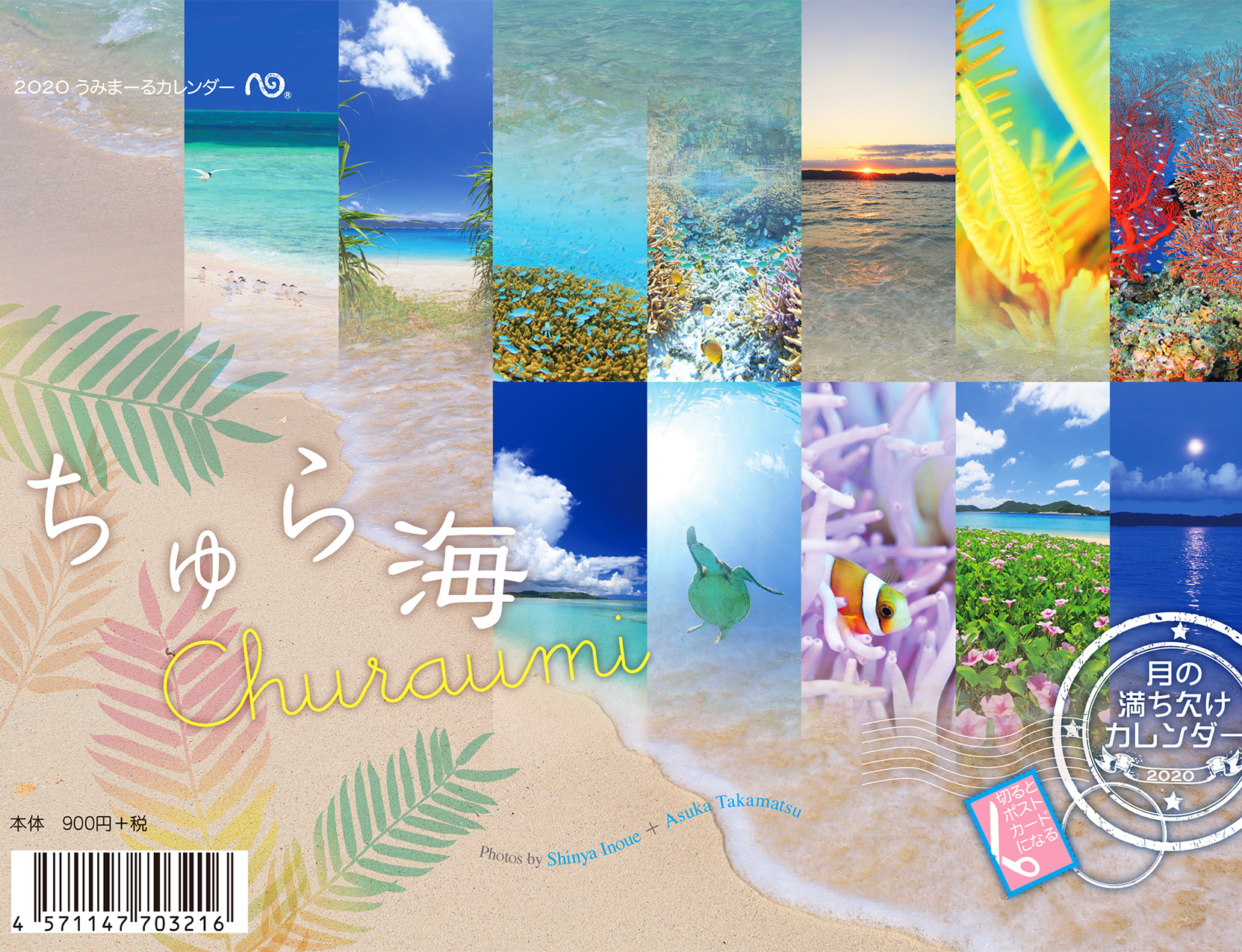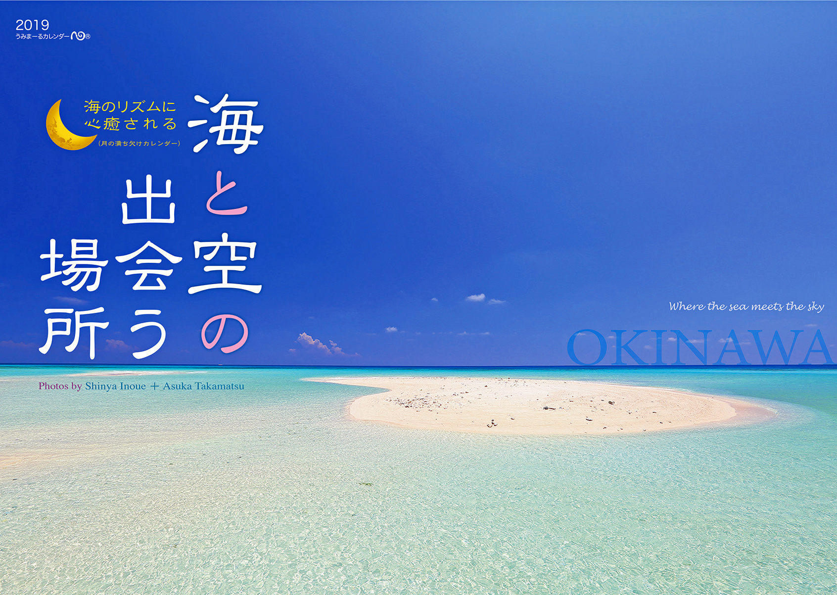 青い空と海、白い砂浜、透明な波、茜色に染まる海辺の風景、祝福の虹、きらきら輝く無数のいのちと星の瞬き。心癒される沖縄の情景。月の満ち欠けとともに、海のリズムを感じる12ヶ月…