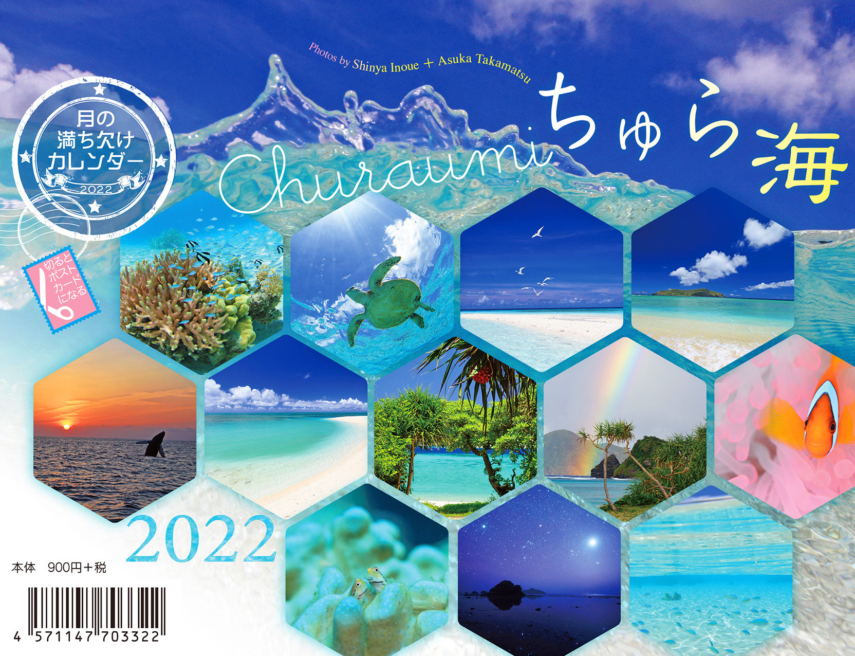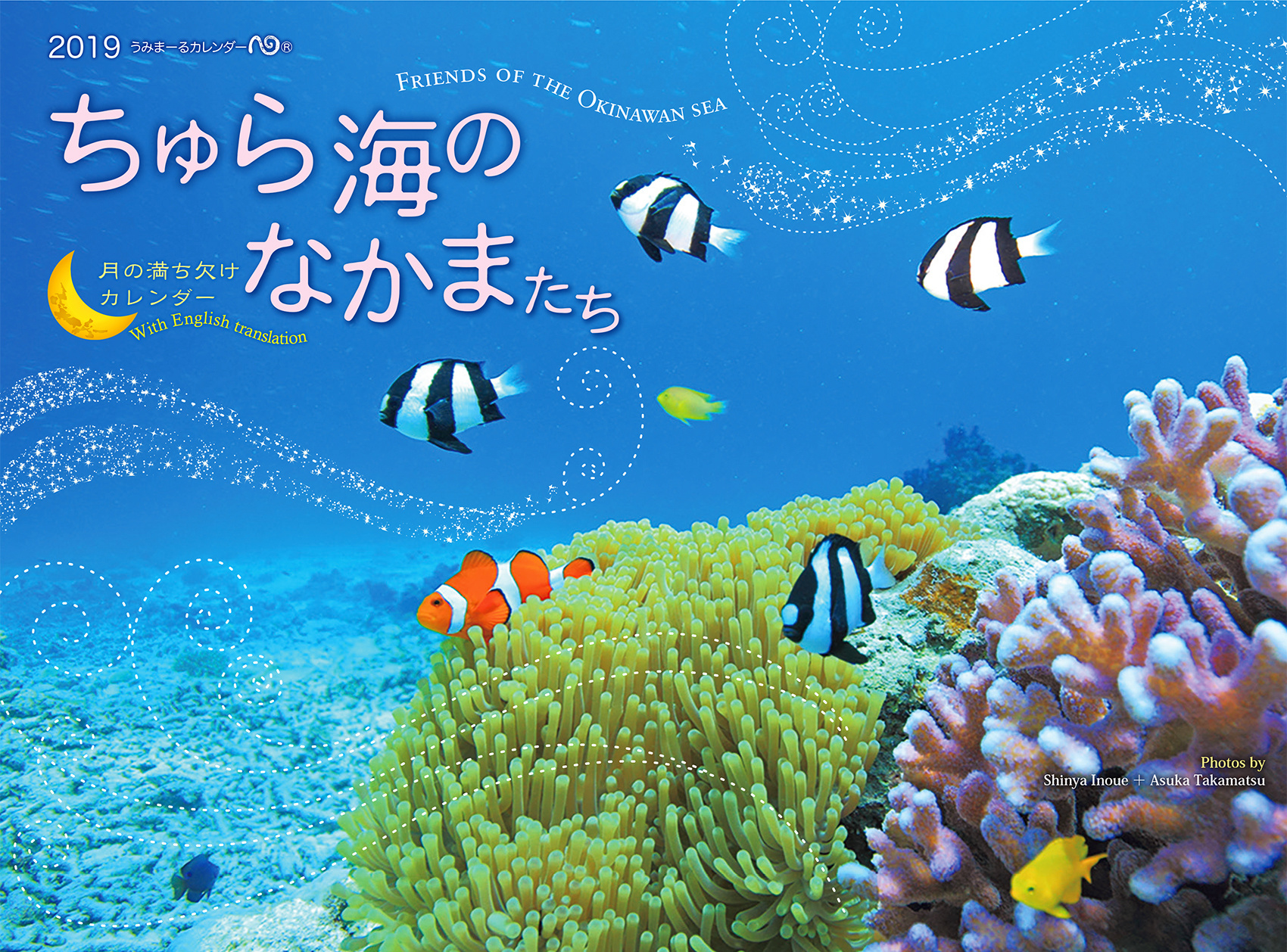 エメラルドグリーンの海、白いビーチ、輝く波、色鮮やかなサンゴや魚たち、のんびりと泳ぐアオウミガメ、虹、星空・・・。心癒される沖縄の情景。月の満ち欠けとともに、海のリズムを感じる12ヶ月…