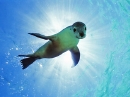 「遊ぼうよ!」とやってくるイルカやアシカ、笑顔のかわいいハリセンボンやカクレクマノミ、愛らしいペンギンやマナティなど、うみまーるが世界の海で出会った生きものたちの笑顔の数々。