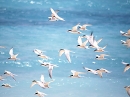 ケラマブルーに浮かぶ丸い砂浜、太陽に輝く小さな波、もくもくと元気に湧く白い入道雲、光のリズムに泳ぐ魚たち、さわやかに泳いでいくウミガメほほえましいアジサシの親子...。
