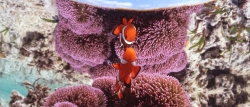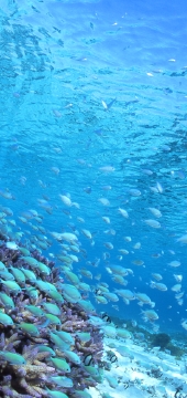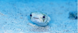 「しあわせ日和」というタイトルで、8ページに渡り、海の生きものたちの表情を紹介しています。 アジサシの親子、マンタ、アザラシ、アシカ、ハリセンボン、カクレクマノミ、アオウミガメ、デバスズメダイが登場。 扉の「ほほえみ時間」では、イシガキカエルウオが出迎えます。 |