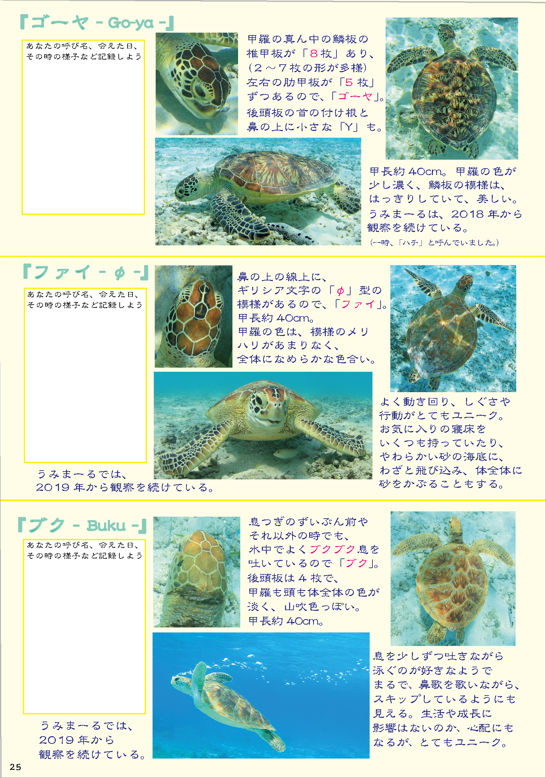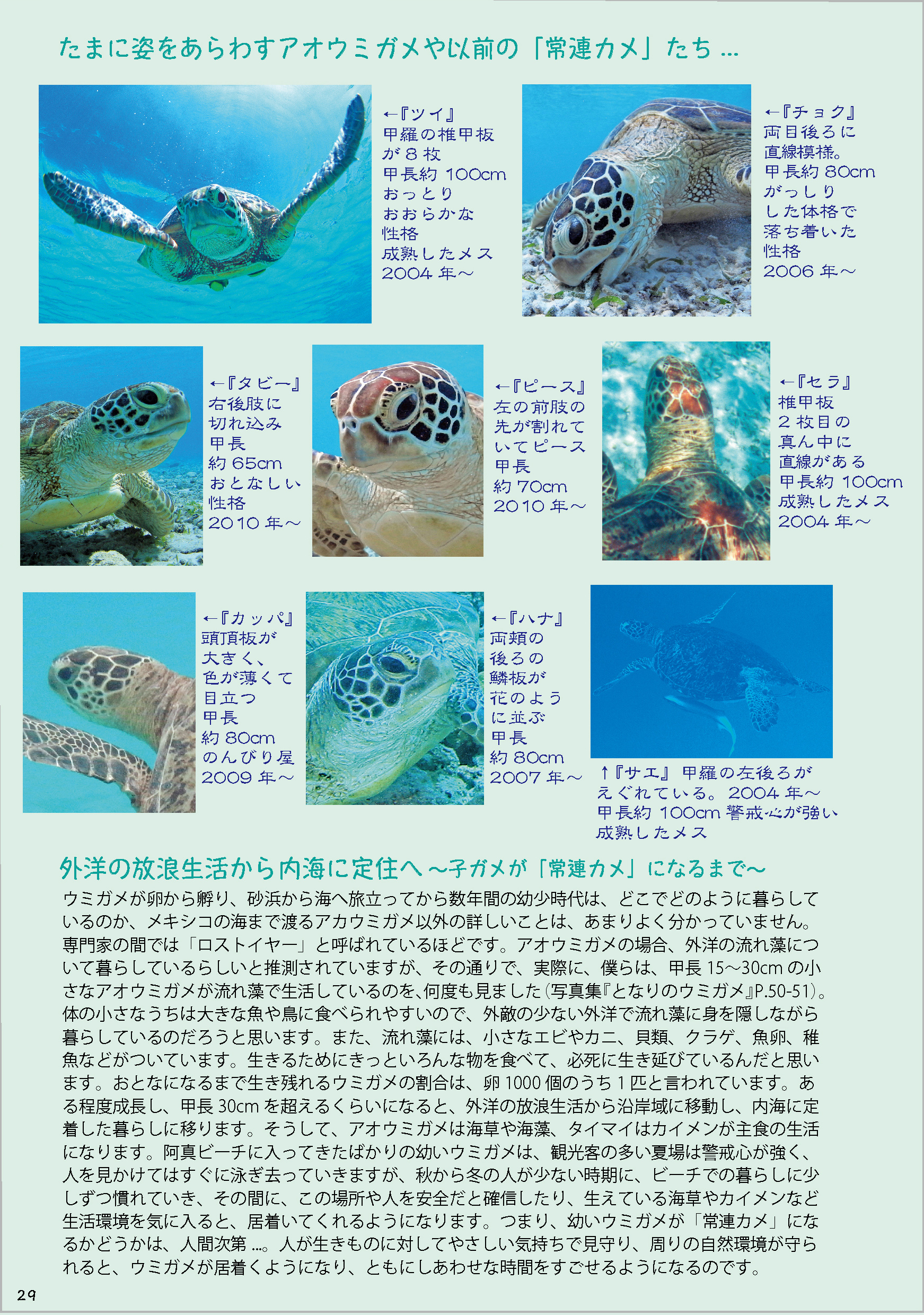 ★阿真ビーチの常連カメ『阿真ビーチ自然観察ガイド2021』より抜粋(2021時点)最新情報はこちら