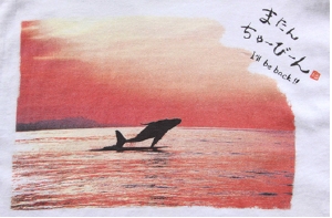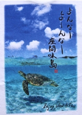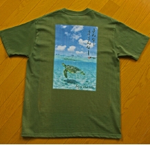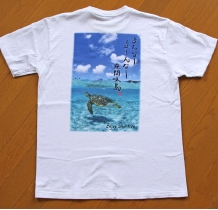 バックプリント(背中にアオウミガメの写真デザイン)白には「座間味島」の文字も