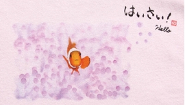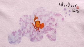 小さなサイズは、胸に魚型に切り抜いたカクレクマノミの写真デザイン