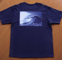 バックプリント(背中に大きく波の写真デザイン)、胸に小さく大波ロゴ