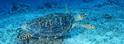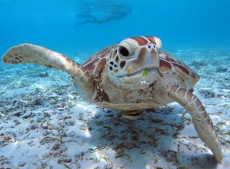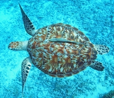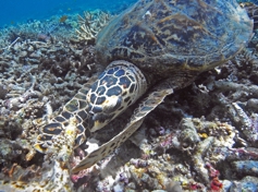 座間味島周辺の海には、主に、アオウミガメ、タイマイ、アカウミガメの