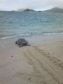 大人5人でやっと抱えて車の荷台に載せて運び、砂浜で下ろすと、自分でゆっくりと海へ向かって歩き始めました。疲れているのか、時折歩を止めて休みながら、無事、海へ帰っていきました。